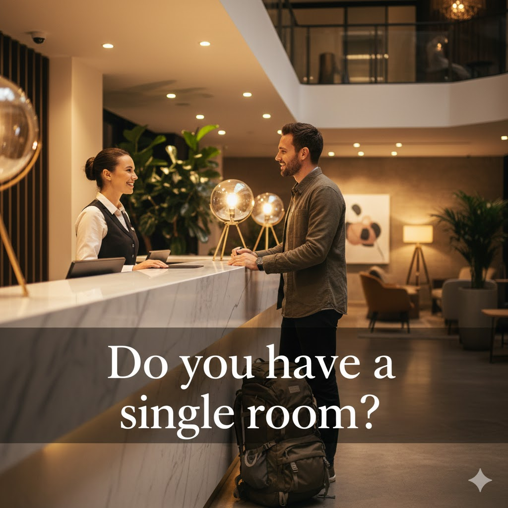 "Do you have a single room?" 혼자 여행할 때 필수인 이 문장, 제대로 쓰고 계신가요? 호텔 예약 없이 갑자기 숙소를 찾아야 할 때, 당황하지 않고 원어민처럼 방을 확인하는 방법과 실전 예문을 정리해 드립니다!
