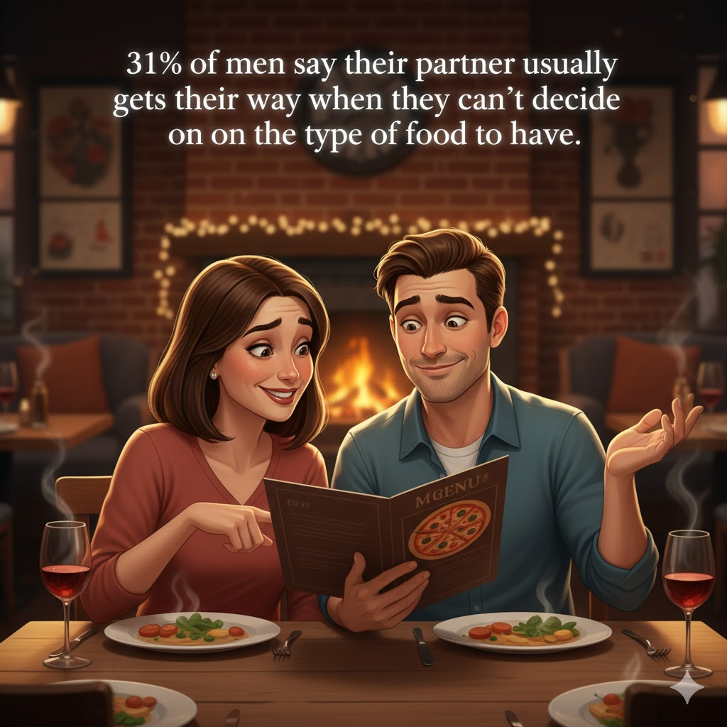 “31% of men say their partner usually gets their way when they can’t decide on the type of food to have.”