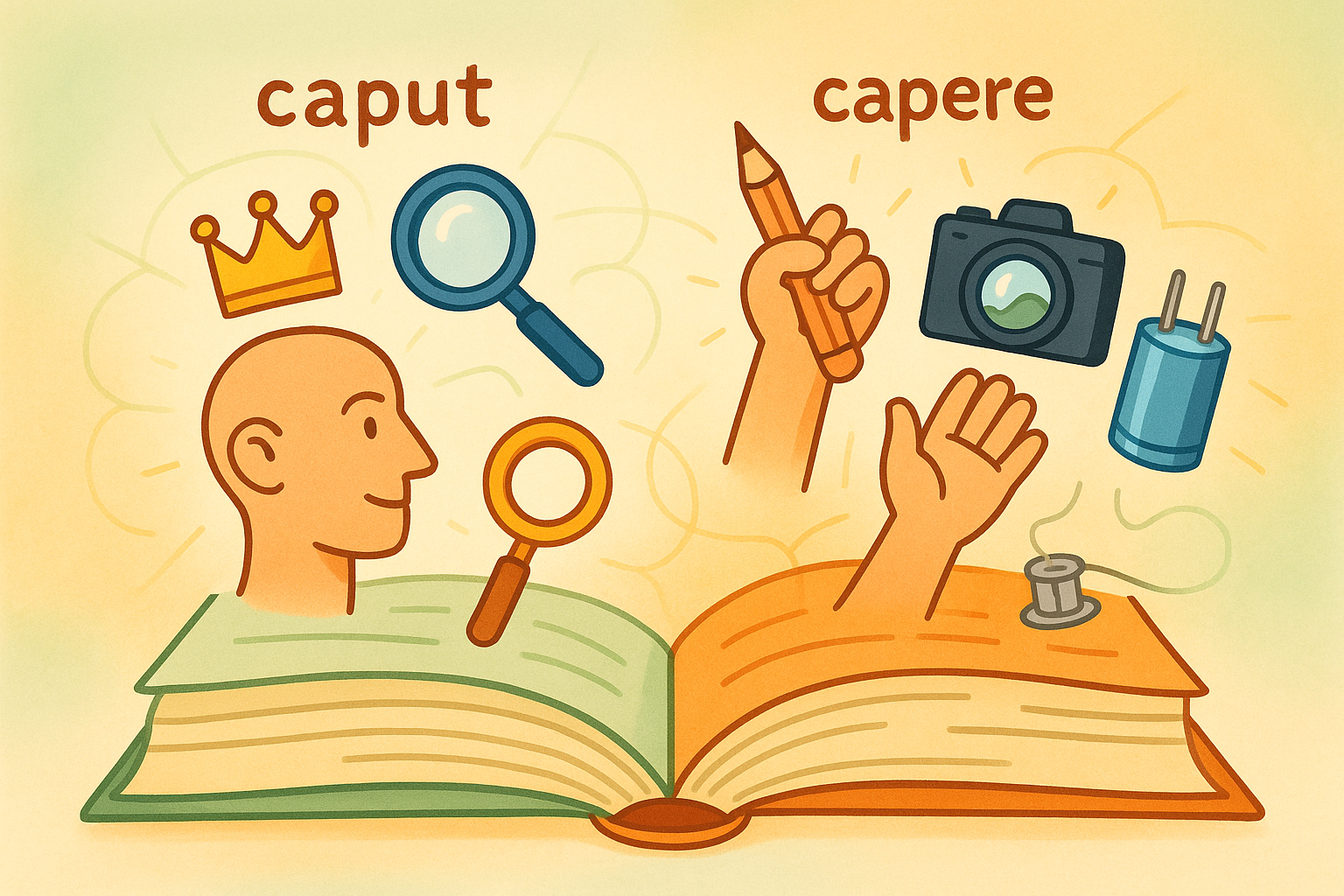 사실 'cap' 어원은 크게 두 가지 라틴어 뿌리에서 출발했어요. 하나는 바로 'caput' [ˈka.put] (머리)에서 온 친구들이고, 다른 하나는 'capere' [ˈka.pe.re] (잡다, 취하다)에서 온 친구들이랍니다. 오늘은 이 두 개의 어원이 어떻게 'capital'부터 'capacitor'까지, 정말 다양한 단어들을 만들어냈는지 그 흥미진진한 이야기를 풀어나가 볼까 해요. 저와 함께 어원의 세계로 풍덩 빠져볼 준비 되셨나요? 🚀