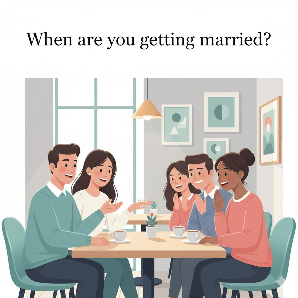 👉 기쁜 소식 들었어! 너희 결혼 언제 해? - So, have you picked a date yet? When are you getting married?
