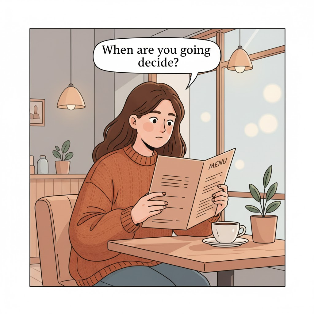 해석: 주문하시겠어요, 아니면 언제쯤 결정하시겠어요?