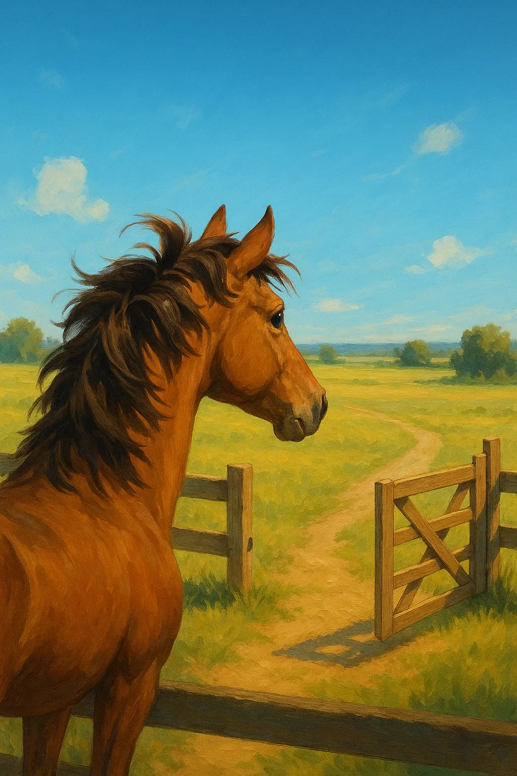 loose (C: 보어 - 형용사로 ‘풀린 상태’ 묘사)→ 여기서 loose는 "매여 있지 않고 자유로운 상태"를 뜻하며, "말이 울타리나 마구에서 풀려 도망간 상태"를 암시합니다. - 이 문장은 "S + be + 형용사" 구조로, 주어의 상태를 설명하는 형용사 보어를 사용합니다.