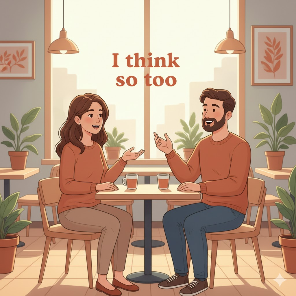 오늘은 원어민들이 일상에서 정말 많이 쓰는 "I think so too"에 대해 깊이 있게 알아봤습니다. 이제 "I agree"만 쓰지 말고, 이 표현을 사용해서 더 부드럽고 자연스러운 대화를 이어나가 보세요! 여러분의 영어 공부를 언제나 응원합니다. 궁금한 점이 있다면 댓글로 편하게 물어봐 주세요~ 😊