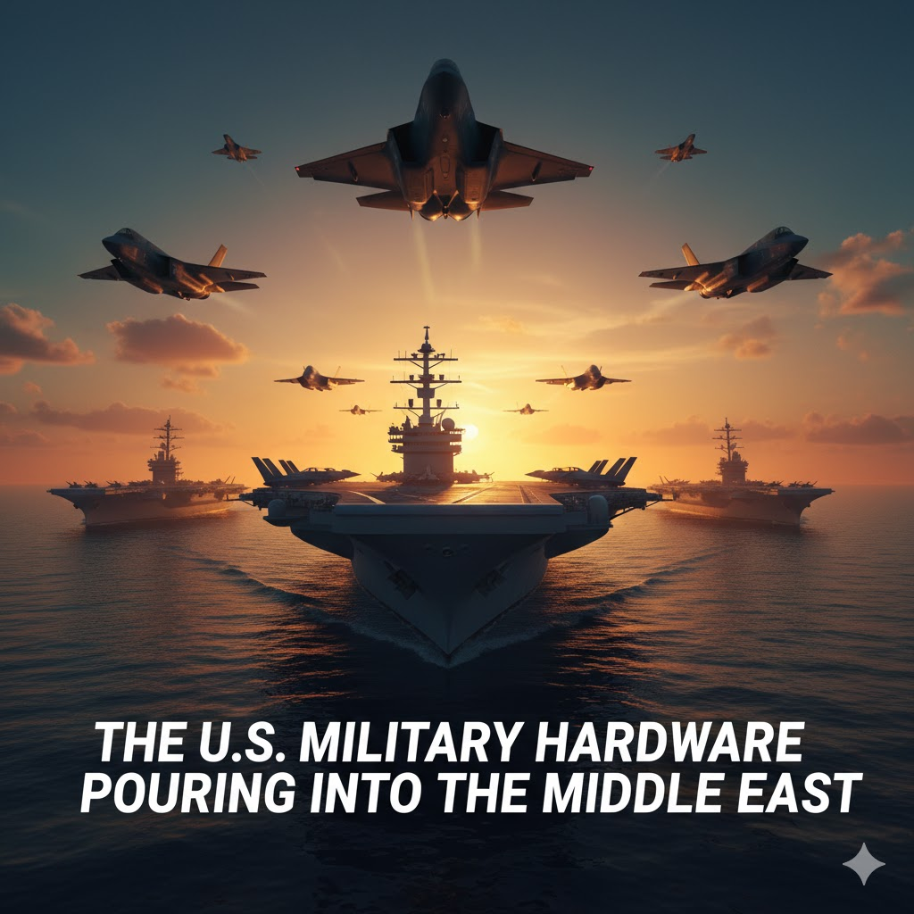 뉴스 맥락: 미국의 막강한 군사력이 중동, 특히 이란 접경지로 집결 중임을 시사함.