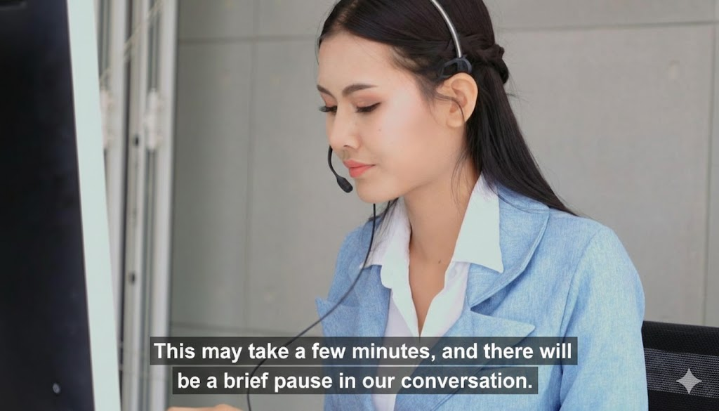 1. "I need to look up your account details. This may take a few minutes, and there will be a brief pause in our conversation."