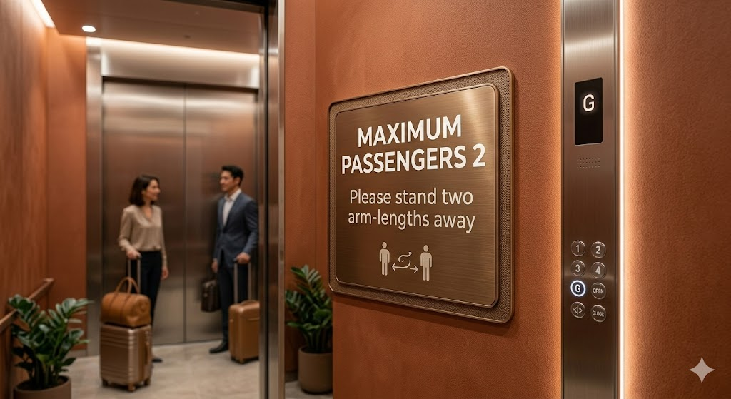▲ 엘리베이터 내 사회적 거리두기 공고 이미지