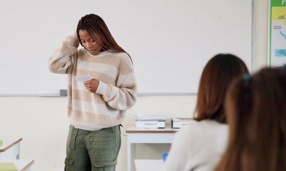 발표 전 긴장되어 자신감이 부족한 상황 😟