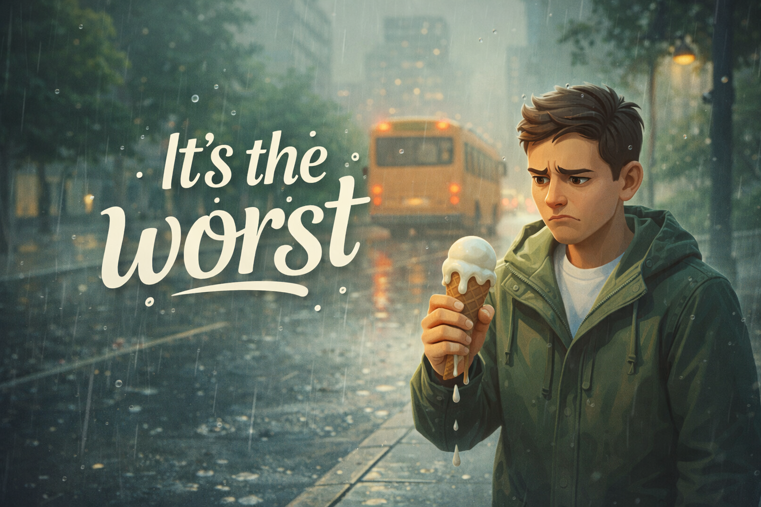 여러분, 혹시 아침에 눈 떴는데 비는 오고, 버스는 눈앞에서 놓치고, 게다가 아끼는 옷에 커피까지 쏟은 그런 날 있으신가요? 😅 그럴 때 "기분 참 안 좋네"라는 말로는 부족하잖아요. 저도 예전에 해외 여행 중에 가방을 통째로 잃어버린 적이 있는데, 그때 정말 입 밖으로 튀어나온 말이 바로 "It’s the worst!"였어요. 오늘은 이렇게 감정을 팍팍 담아 쓸 수 있는 리얼 영어 표현을 함께 알아봐요!