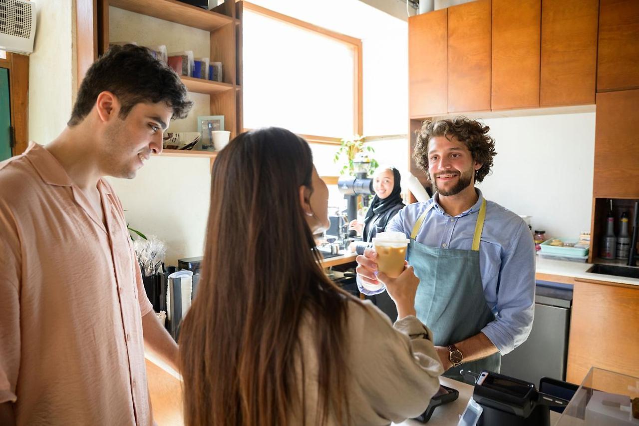 카페에서 차가운 음료를 주문하는 시각적 예시