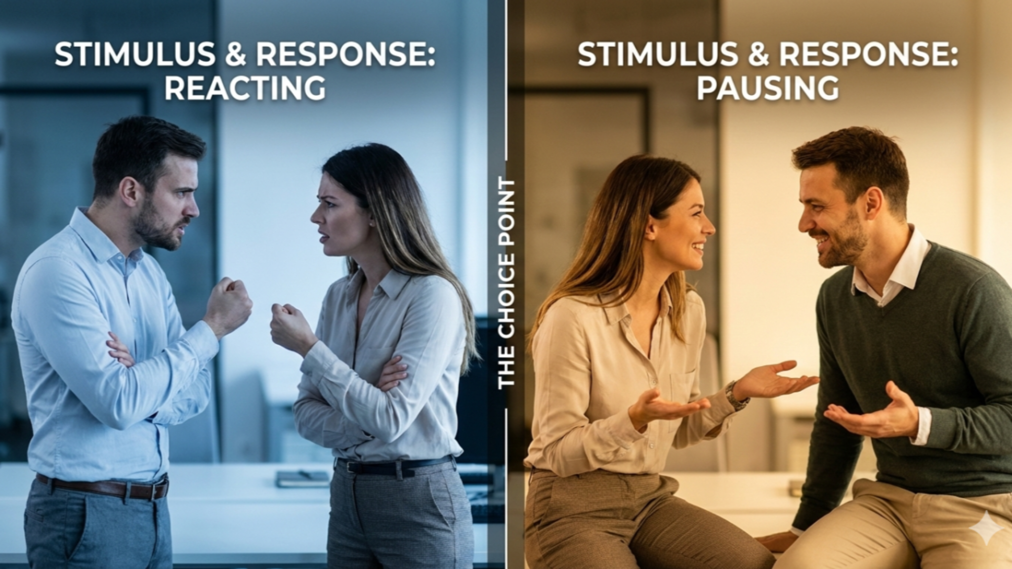 이미지: 자극과 반응 사이의 '선택의 순간'을 시각화한 모습