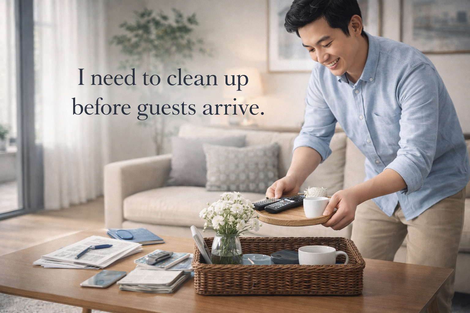 👉 I need to clean up before guests arrive.