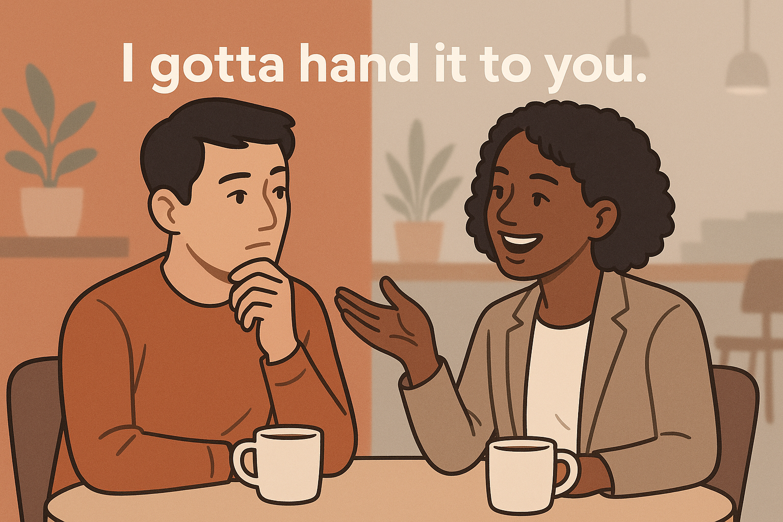 5. I gotta hand it to you. - "너 정말 잘했어, 인정!" 😎
