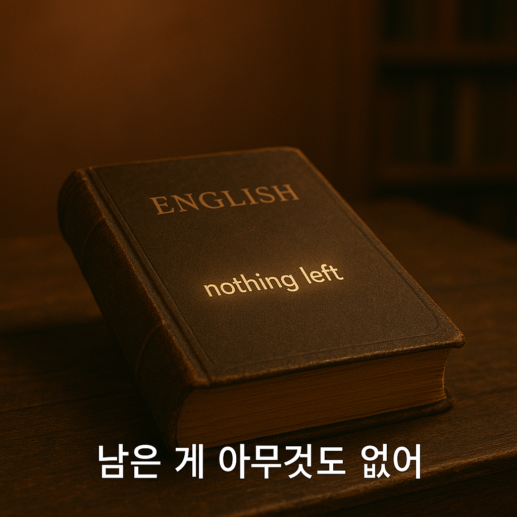 안녕하세요, 영어 공부는 해도 해도 끝이 없는 것 같고, 내 실력이 늘고 있나 싶을 때가 많죠? 저도 그래요. 그럴 때마다 ‘나에게 남은 건 아무것도 없어…’라고 한숨 쉴 때가 있는데요. 😂 그런데 이 ‘남은 게 없다’는 표현, 영어로는 어떻게 말할까요? 바로 오늘 다룰 표현, nothing left입니다! 이 간단한 표현 하나로 얼마나 다양한 문장을 만들 수 있는지 함께 배워볼게요. 그럼, 같이 시작해볼까요? 😊