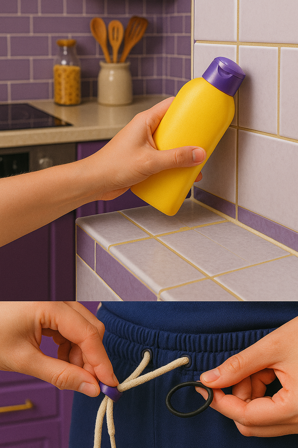 - 바지끈 묶기: 고무줄이나 머리핀을 이용해 빠진 바지끈을 쉽게 다시 넣을 수 있습니다.