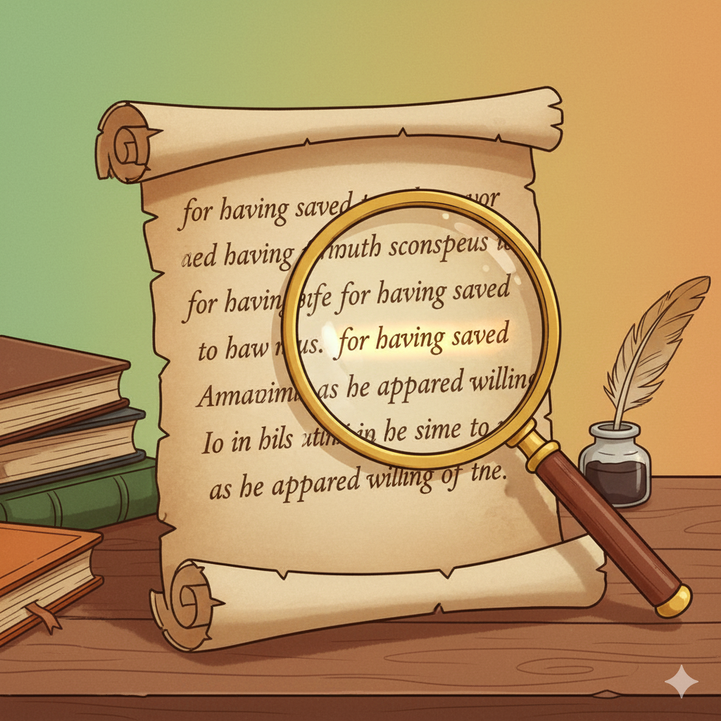 "for having saved his life" 구문이 보이시죠? 전치사 **for**의 목적어로 동명사(having saved)가 쓰였는데, 'having p.p. (완료 동명사)'는 주절의 시점(seemed)보다 **한 시점 더 과거**의 일을 나타낼 때 사용합니다. 즉, '구해준 것'이 '감사해 보인 것'보다 먼저 일어난 일임을 명확히 보여줍니다.