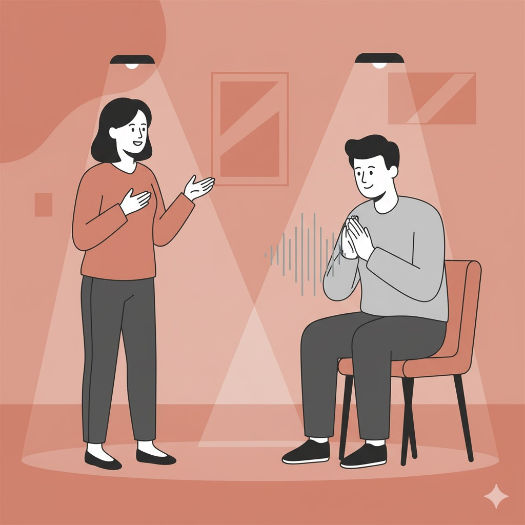 - 👉 핵심 문법: 'is speaking'은 **현재 진행형**으로, 그 행동이 지금 일어나고 있음을 명확히 보여줍니다.