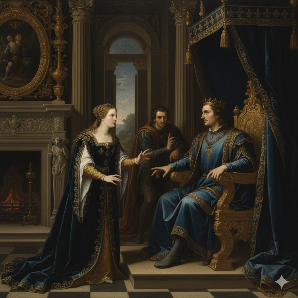 The Earl of Kent told Cordelia about the unhappy condition of her father, and Cordelia asked her husband to allow her to go to Britain with an army. (Lamb)