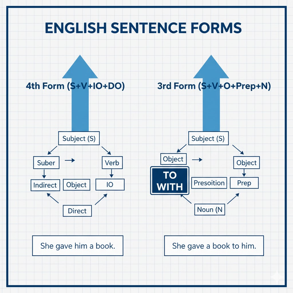 먼저, 우리가 배우는 문장 구조의 기본을 다시 한번 짚어볼게요. 동사 뒤에 목적어가 몇 개 오는지에 따라 문장의 형식(Patterns)이 결정되는데요. 헷갈리는 건 딱 두 가지, **4형식(수여동사)**과 **3형식**입니다.