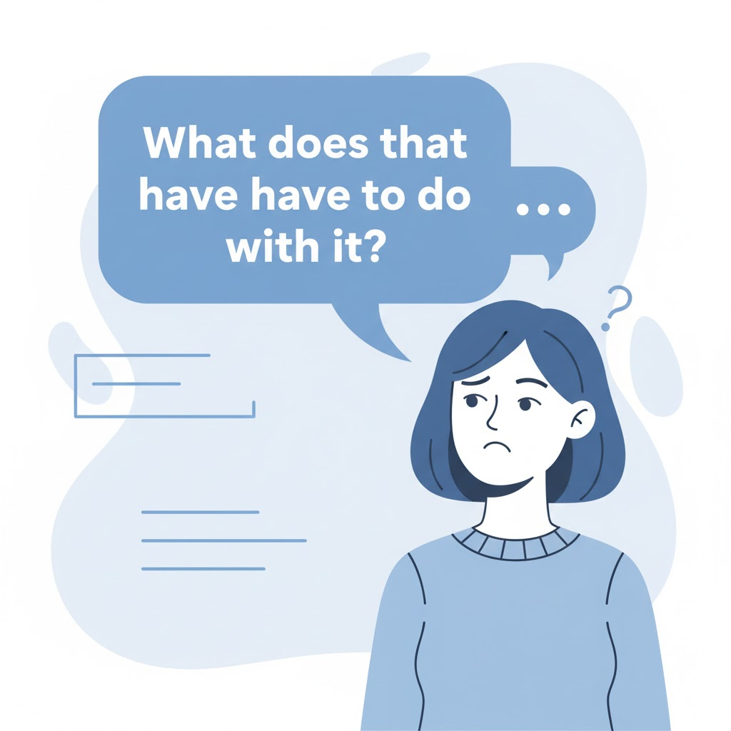 그래서 오늘은 원어민들이 일상에서 정말 많이 쓰는, 상대방의 말이나 행동이 현재 상황이나 주제와 **'아무 상관 없다'**고 되물을 때 사용하는 핵심 패턴 하나를 제대로 파헤쳐 보려고 합니다. 이 패턴 하나만 익혀두면, 여러분의 영어 대화가 훨씬 더 자연스럽고 풍부해질 거예요. 같이 시작해볼까요? 😊