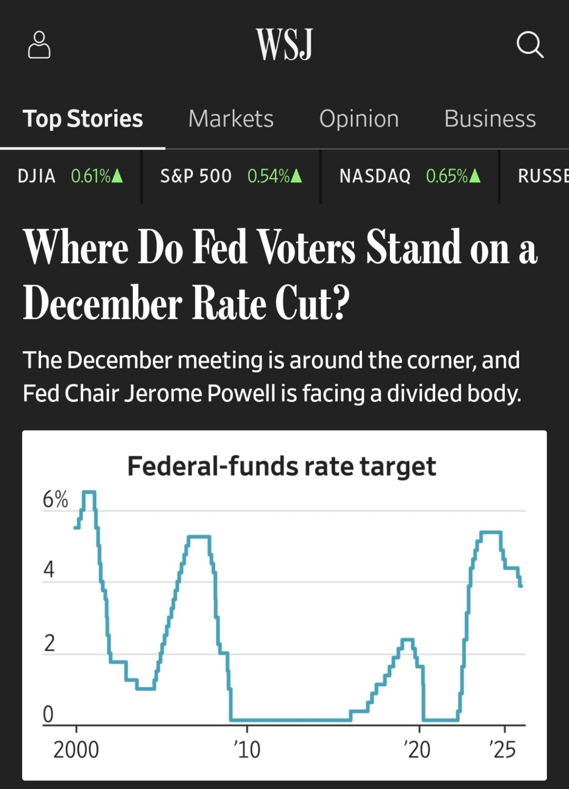 해석: 12월 회의가 임박했고, 제롬 파월 연준 의장은 의견이 갈린 위원들(분열된 집단)을 상대해야 하는 상황이다.