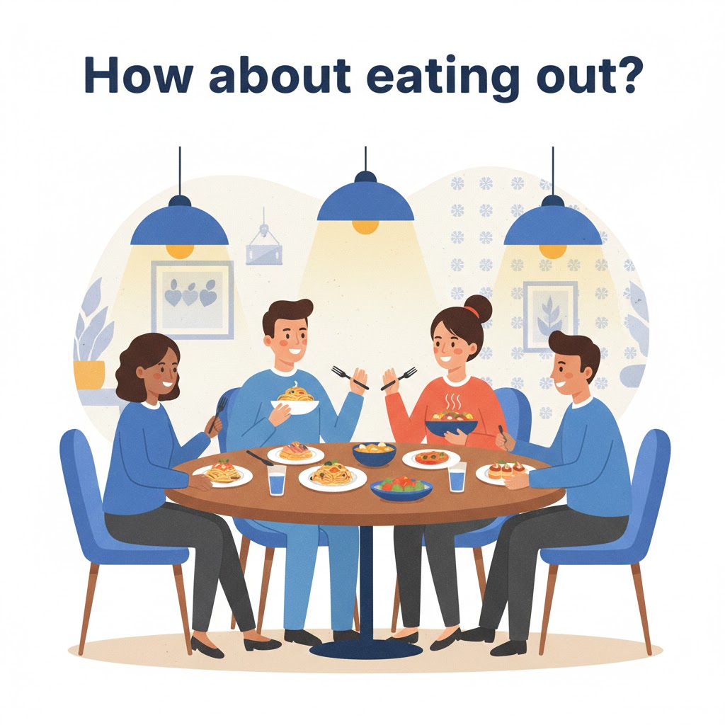 "How about eating out?" 오늘 저녁, 외식 어때요? 지칠 때 가장 먼저 생각나는 이 한마디! 'eating out'의 정확한 원어민 뉘앙스와 실생활에서 바로 써먹는 리얼 예문 5가지를 준비했습니다. 😊안녕하세요! 여러분, 혹시 오늘 퇴근길에 '아, 오늘은 진짜 요리하기 싫다...'라는 생각 안 하셨나요? 저도 가끔은 주방 파업을 선언하고 싶을 때가 정말 많아요. 그럴 때 슬쩍 던지기 좋은 표현이 바로 "How about eating out?"입니다. 단순히 밖에서 먹는다는 뜻을 넘어, 기분 전환을 제안하는 이 마법 같은 문장을 오늘 완벽하게 파헤쳐 볼게요! 💡 [1] 원문 확인하기 📖How about eating out? [2] 의미와 뉘앙스 살펴보기 ✨이 문장은 아주 직관적이면서..