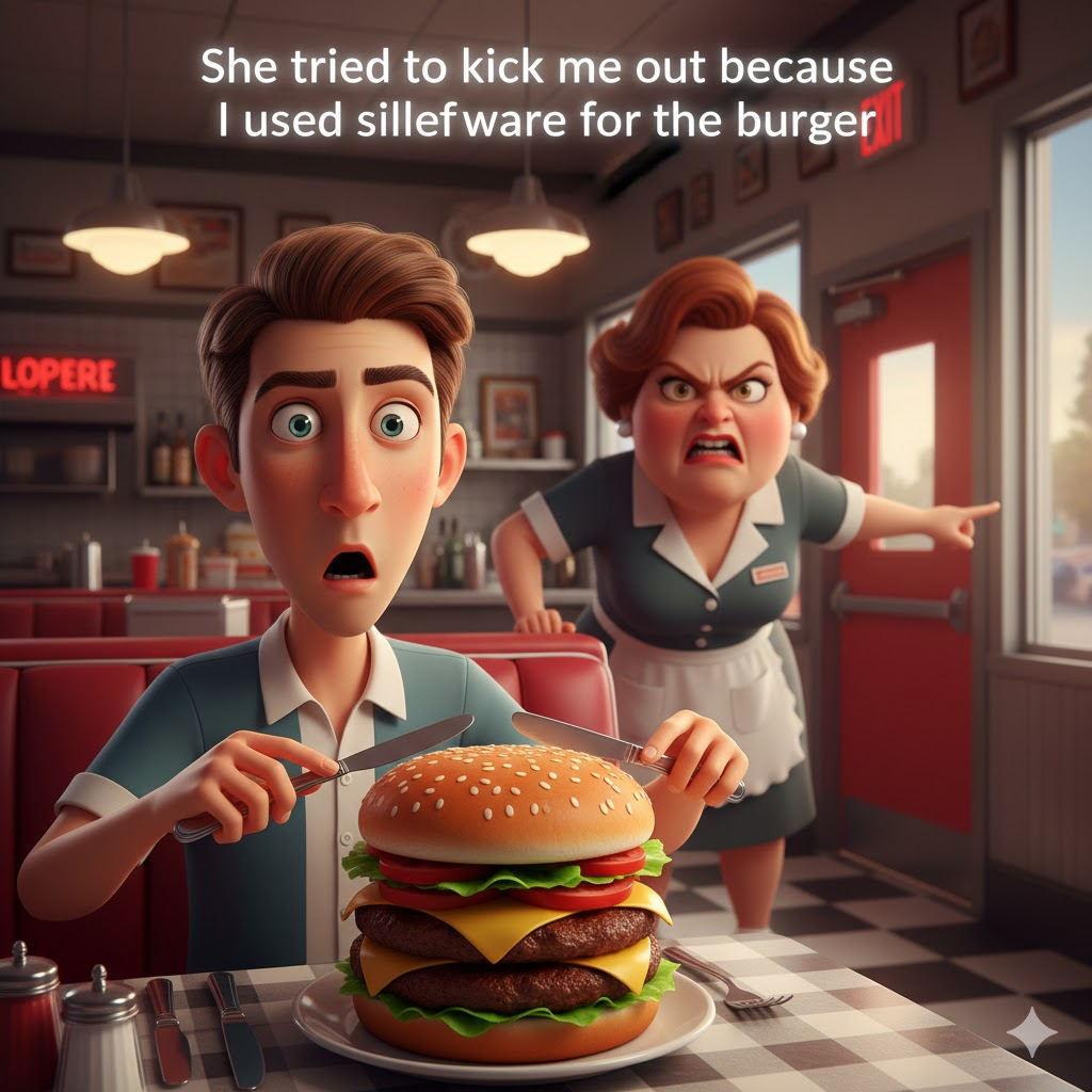 "버거를 포크로 먹었다고 쫓겨날 뻔했다고요?" 황당하고 억울한 상황을 영어로 어떻게 표현할까요? 단순히 단어를 나열하는 것을 넘어, 그 안에 담긴 '비꼼'과 '뉘앙스'까지 완벽하게 내 것으로 만드는 비결을 공개합니다! 😊여러분, 혹시 살면서 정말 말도 안 되는 이유로 무안을 당하거나 거절당해 본 적 있으신가요? "아니, 이게 그렇게 큰 잘못인가?" 싶은 순간 말이에요. 오늘은 SNS나 미드에서 나올 법한 아주 흥미롭고 생생한 표현을 하나 가져왔습니다. 바로 '문화적 차이'나 '지나치게 엄격한 규칙' 때문에 겪는 황당한 상황에 딱 맞는 문장이에요. 함께 살펴볼까요? 😊 [Today's English Phrase]“She tried to kick me out because I used silverware..